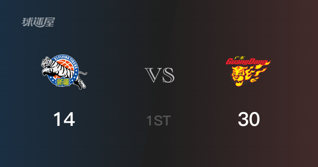 首节结束,广东以30-14领先新疆16分,第二节再战。